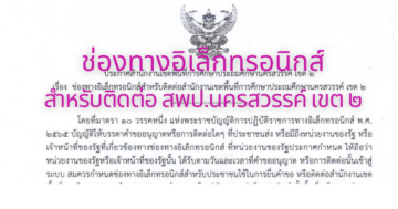 ช่องทางอิเล็กทรอนิกส์สำหรับติดต่อ สพป.นครสวรรค์ เขต ๒ 27 กุมภาพันธ์ 202327 กุมภาพันธ์ 2023 ประชาสัมพันธ์ ปราโมทย์27 กุมภาพันธ์ 2023