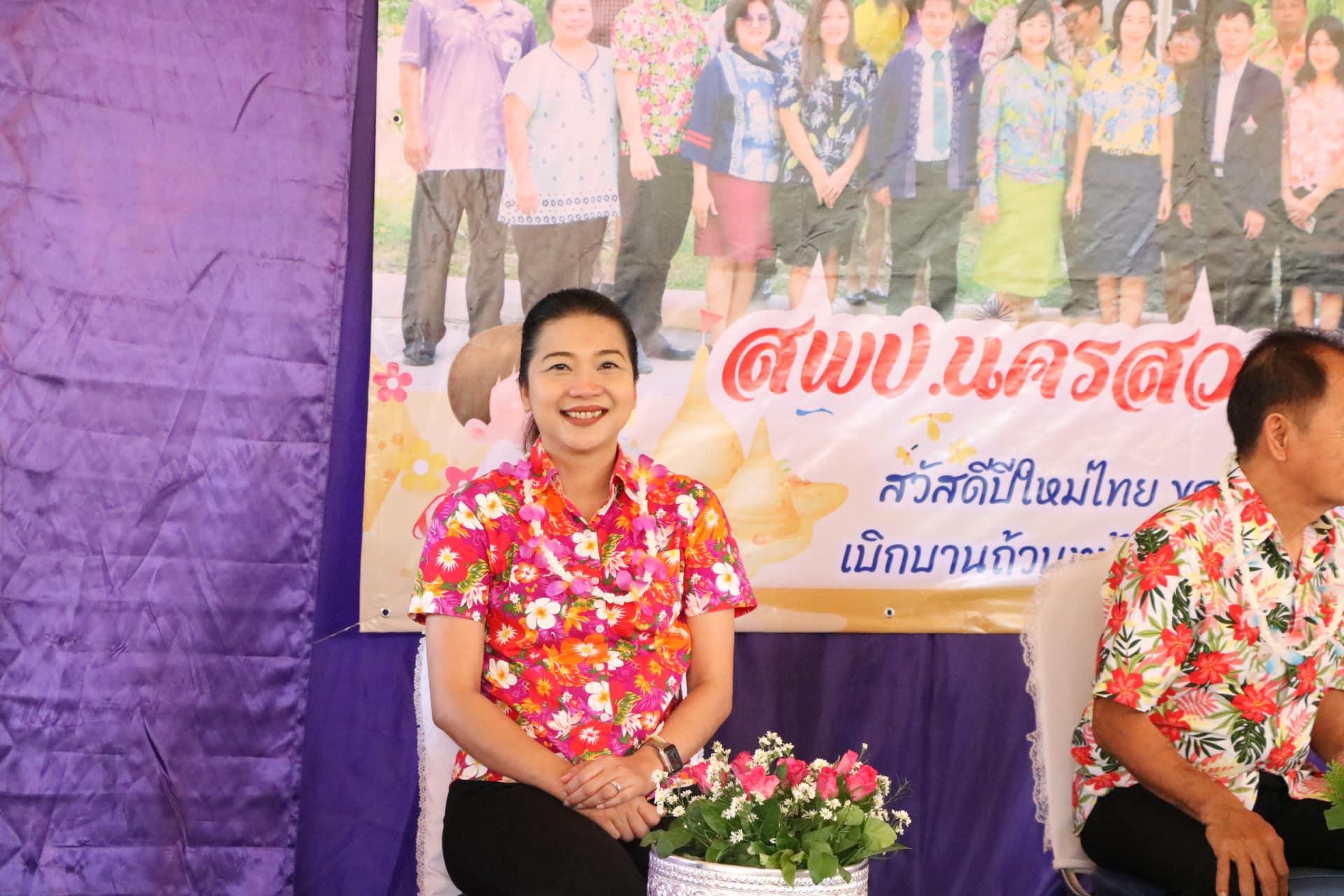 วันที่ ๑๙ เมษายน ๒๕๖๗ นางญาณินท์ จิตตุรงค์อาภรณ์ ผอ.สพป.นครสวรรค์ เขต ๒ พร้อมด้วยนางนัยนา จันทา นายสายัณห์ สีคง นายวิเชียร วงษ์ราช รอง ผอ.สพป.นครสวรรค์ เขต ๒ ผู้บริหารสถานศึกษา ผอ.กลุ่ม/หน่วย บุคลากรในสังกัด เข้าร่วมกิจกรรมรดน้ำดำหัวขอพรผู้ใหญ่ เนื่องในเทศกาลสงกรานต์ ประจำปี ๒๕๖๗ เพื่อสืบสานประเพณีสงกรานต์