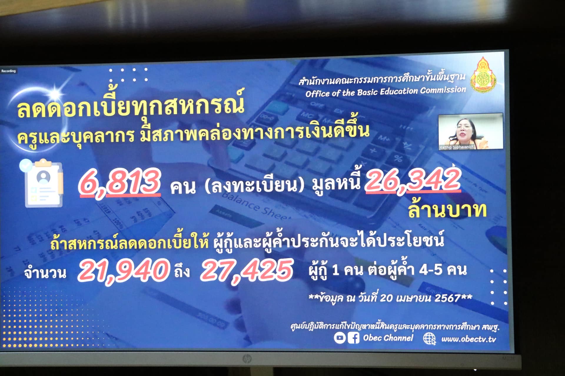 เข้าร่วมประชุมการขับเคลื่อนสถานีแก้หนี้สำนักงานเขตพื้นที่การศึกษา ครั้งที่ ๔/๒๕๖๗ ผ่านระบบออนไลน์ (zoom meeting )