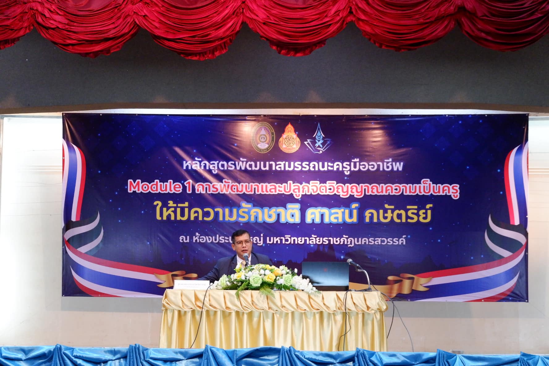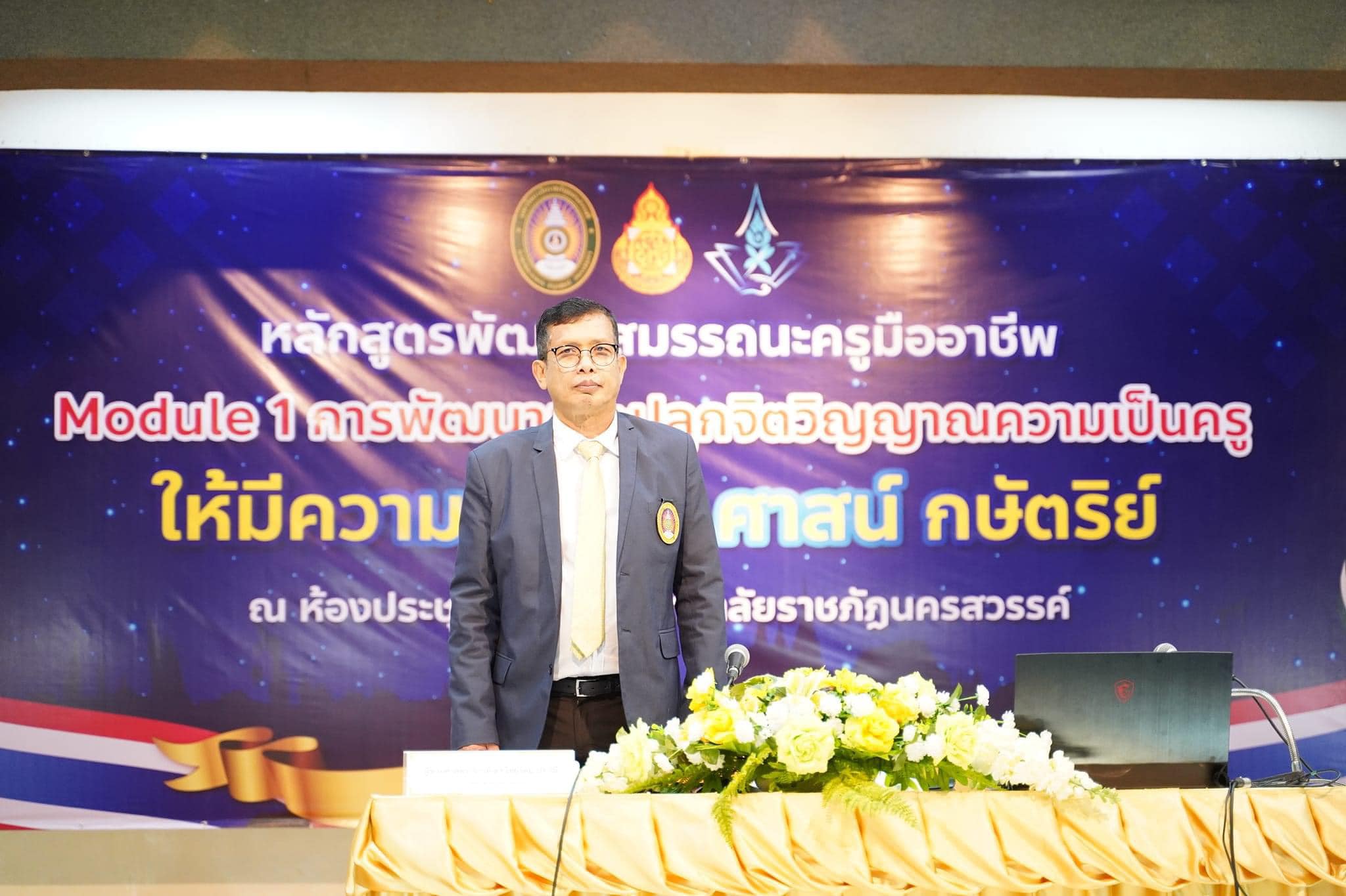 นางญาณินท์ จิตตุรงค์อาภรณ์ ผอ.สพป.นครสวรรค์ เขต ๒ ร่วมเป็นเกียรติในพิธีเปิดโครงการอบรมหลักสูตรพัฒนาสมรรถนะครูมืออาชีพ Module ที่ ๑ การพัฒนาและปลูกฝังจิตวิญญาณความเป็นครูให้มีความรักชาติ ศาสน์ กษัตริย์ ระหว่างวันที่ ๓๐-๓๑ ตุลาคม ๒๕๖๖ โดยมีผู้ช่วยศาสตราจารย์ ดร.ไชยรัตน์ ปราณี อธิการบดีมหาวิทยาลัยราชภัฏนครสวรรค์ เป็นประธานในพิธีเปิด และนางพิชนาวรรณ ชังชั่ว ผอ.กลุ่มนิเทศฯ พร้อมด้วย นางรัชญา นิ่มยี่สุ่น และนายกฤษณะ ไกรสี ศึกษานิเทศก์ เป็นวิทยากรในครั้งนี้