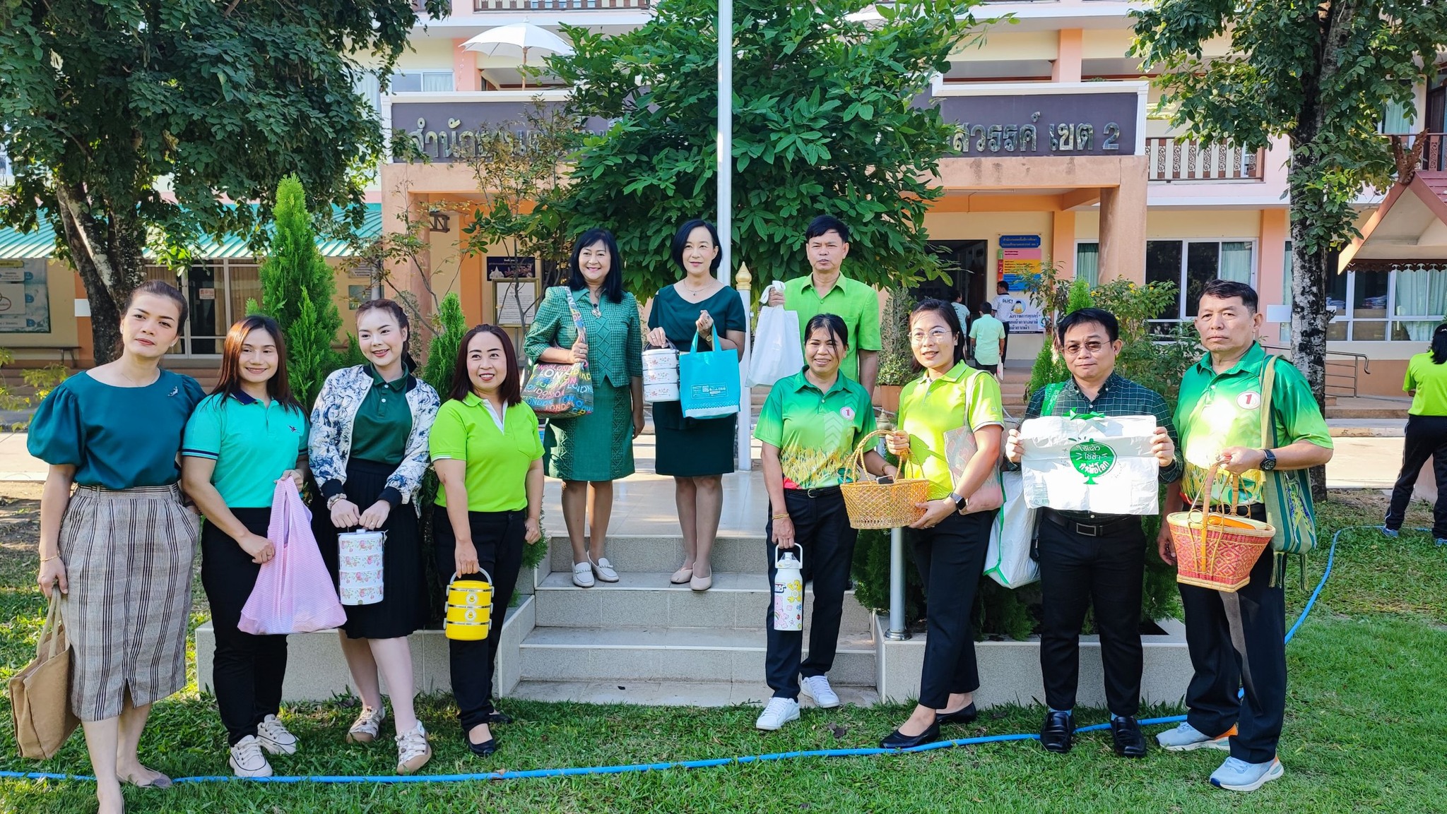 พร้อมด้วย นางนัยนา จันทา นายวิเชียร วงษ์ราช รอง.ผอ.สพป.นครสวรรค์ เขต ๒ และบุคลากร เจ้าหน้าที่ ร่วมกันใช้ถุงผ้า ปิ่นโตใส่อาหาร ตามมาตรการลด และคัดแยกขยะใน สพป.นครสวรรค์ เขต ๒ เพื่อส่งเสริม สนับสนุนการลดและคัดแยกขยะมูลฝอยในสำนักงานเขตพื้นที่การศึกษา ตามโครงการ “Green & Clean สพป.นครสวรรค์ เขต ๒”